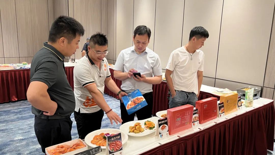 下午2点,嘉宾陆续到场签到。在工作人员的带领下参观大厅陈列的特色产品。以国联汉虾系列、美佳蟹柳及MK官网2024年主推新品组成的近20款菜式琳琅满目,香气四溢,吸引了众多餐饮客户的目光,大家纷纷打卡拍照。现场咨询不断,来自工厂及门店的资深负责人从养殖、加工到菜式推广为客户做一一解答。